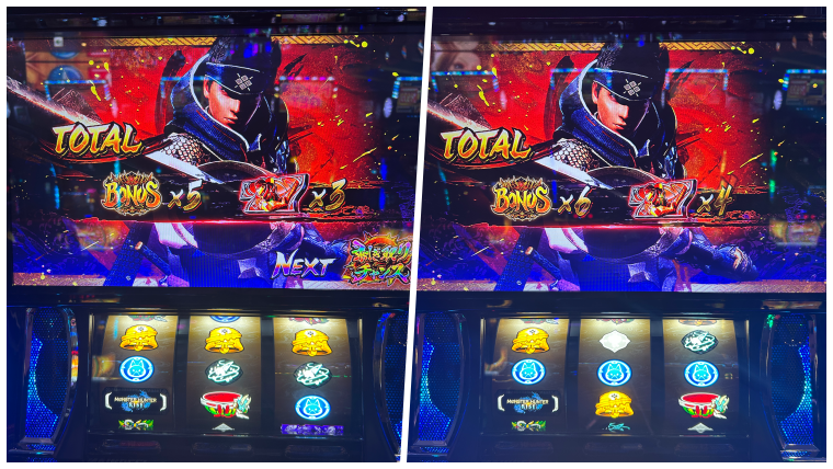 打ってる感じ上位で純増が4枚に増えたので、モンスター討伐よりも如何に約500G程耐えての差枚数2100枚出してエンディングまで持っていけるかゲーに感じました。