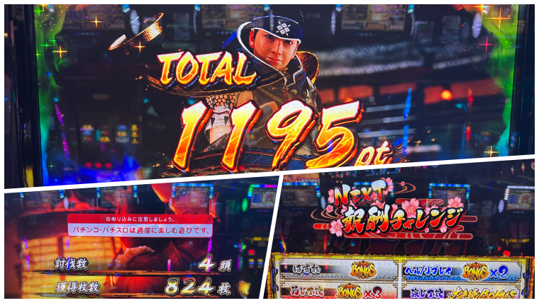 結果的に百竜の淵源チャレンジ4回成功のエンディングで12000枚出して、5回目の百竜の淵源チャレンジ失敗で終了しましたが、