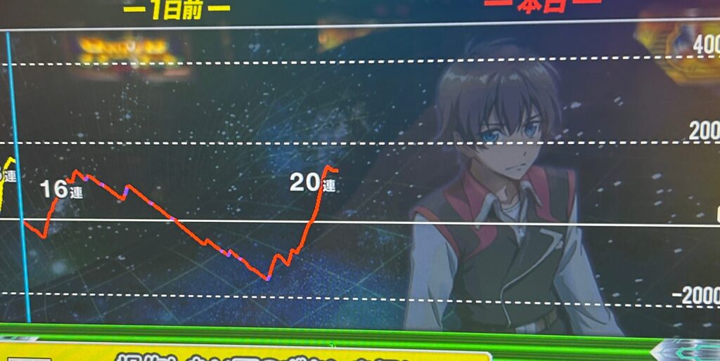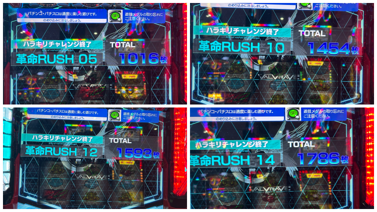 道中は革命ボーナス失敗した後66ゲームで引き戻しがきたり、それを単発で落としたと思ったらもう一度引き戻しからV3つとって超革命まで持っていけたりとこの日は引き戻しの多い1日でした。