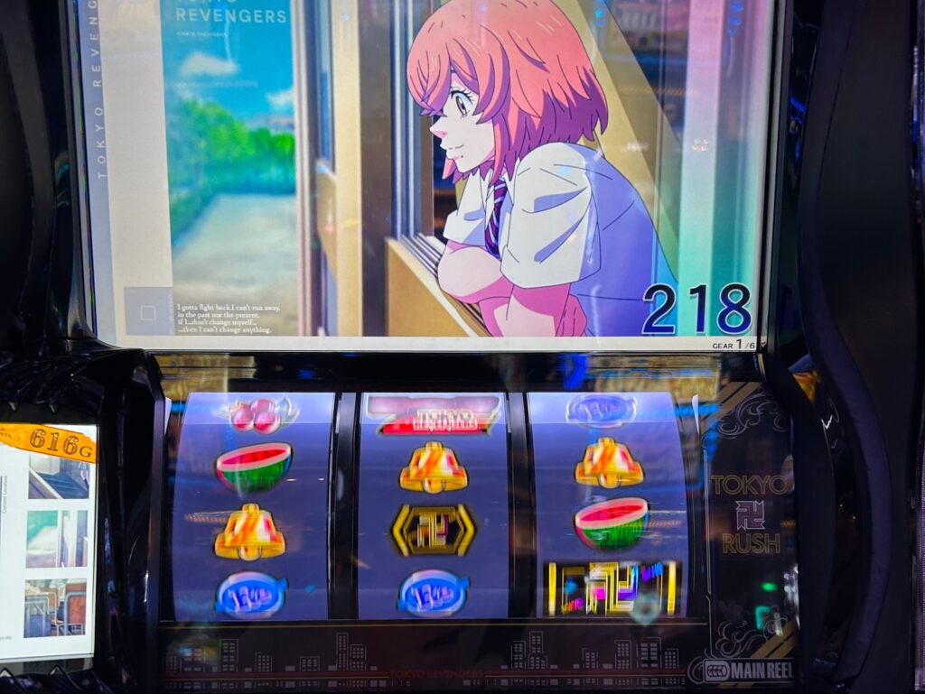 次に拾ったのは東京リベンジャーズの1スルーサブ画面616Gの台です。おそらくレギュラー後即辞め台ですね。