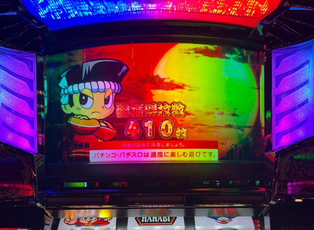 獲得枚数410枚と大失敗をやらかしました。ちなみにベル22回残しでした。8回ベル引くまでに6回ジャックインは多すぎですわ・・・。