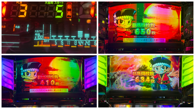 411ゲームで花火百景ステージ(リーチ目高確ステージ)から当たりを引けてそれがBIGといい感じに早いゲーム数からBIGを引けました。