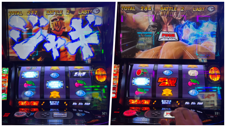 2連目の最終ゲーム中段チェリーからジャギ来ての弱チェで当ててシャオ共闘でした。