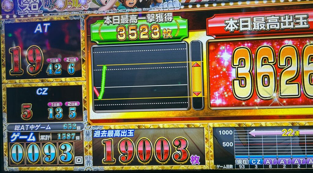 前任者なしで朝イチからの実践でしたが、朝イチ天国CZスルーから始まり、800CZスルー、天国CZスルーと初っ端3スルーと早くも投資が嵩んでいきました。