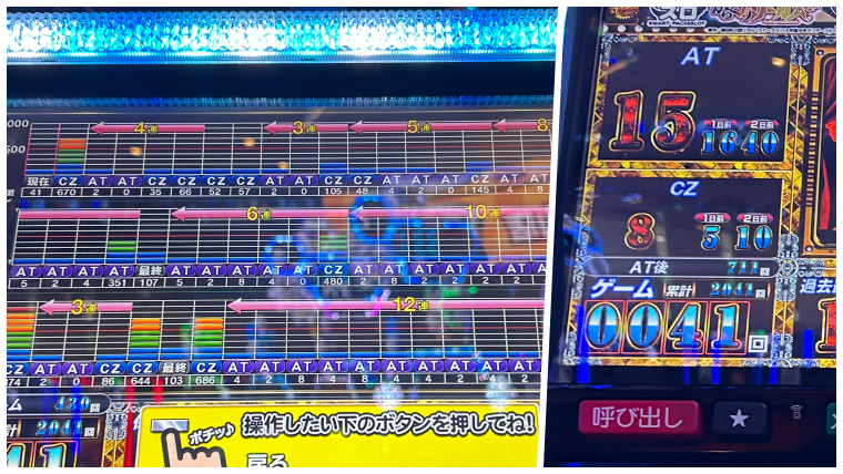 推定ではありますが朝イチ400直撃からAT、推定200ゾーンCZからAT、天国2回からAT、天国4回からAT、600〜1000ゾーンのCZ抜けって感じの履歴でした。