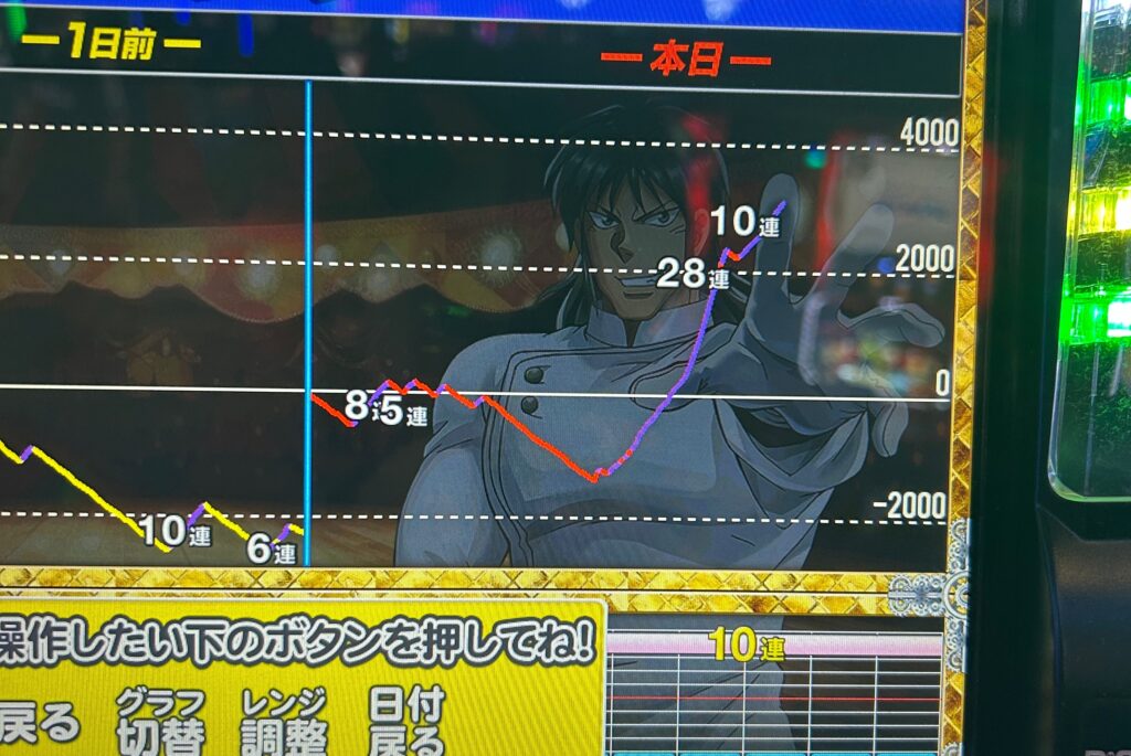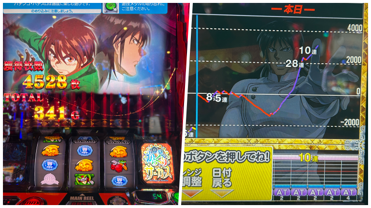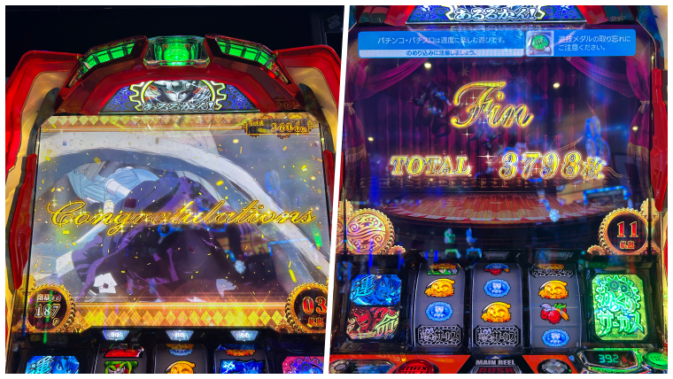 今回のからくりはCZが軽い+気にしていた台ということで後ツモ狙いで打ってみましたが、結果は一劇ループこそ取れなかったものの+84000円と大きくプラスにできました。