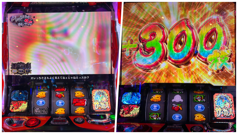 この後ジャグラーをチョロ打ちして-2000円しつつピンポイント狙いなら打ってみたいと思っていたからくりサーカスがあいたので打つことに。