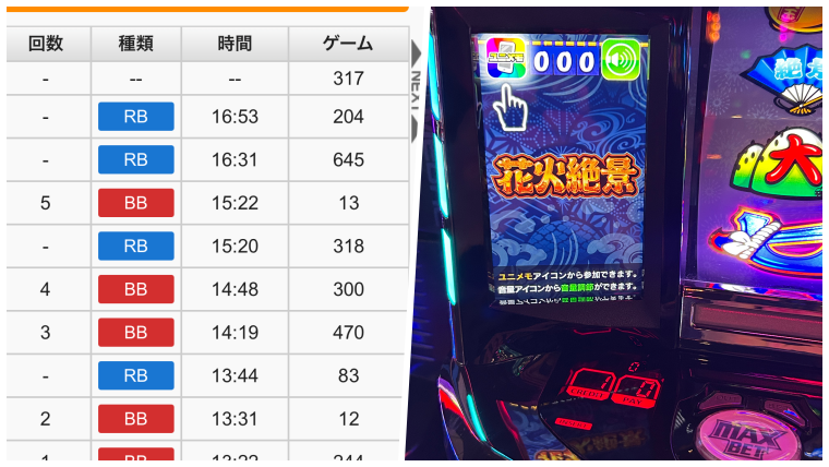 まず朝イチうちに行ったのは花火絶景の据え置き317ゲームの台