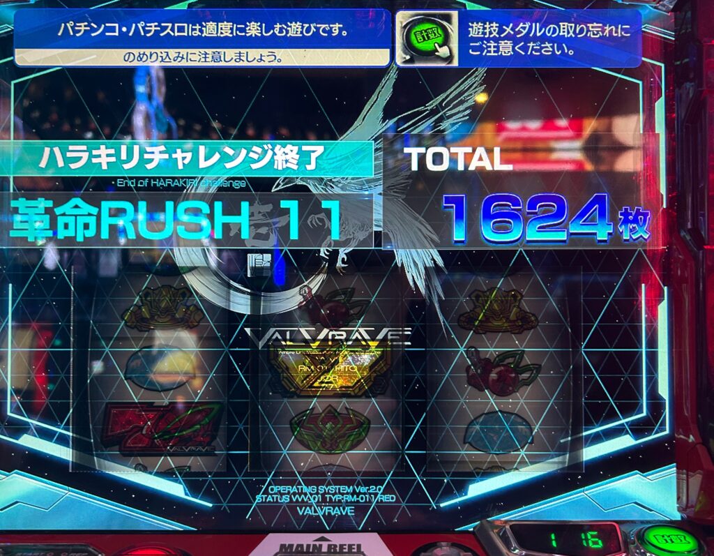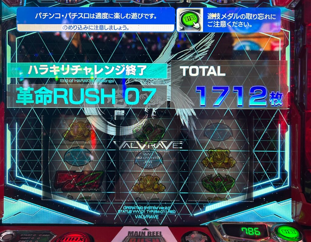 斜めV揃いから革命ボーナス確定スタートでした