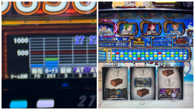 レア役から迷宮探索行ってそこから発展して510ゲーム当選でした。