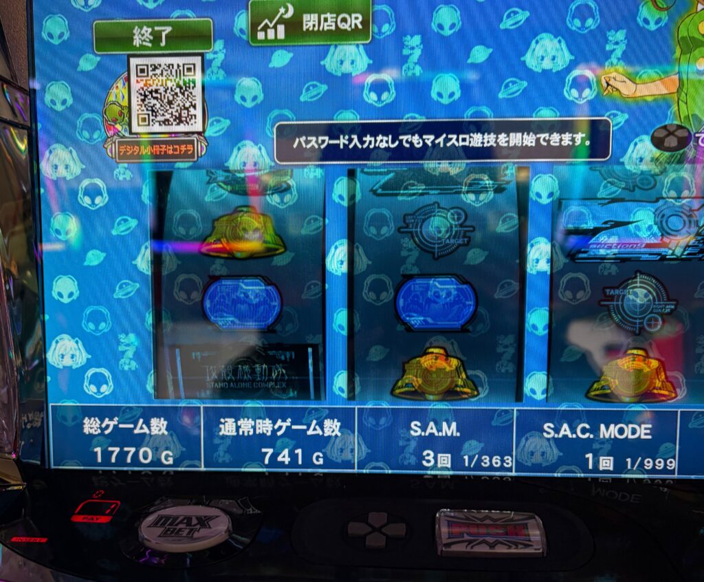 攻殻機動隊は前兆ない系のやつかな?前兆でメダルが減らないのはいいですね!