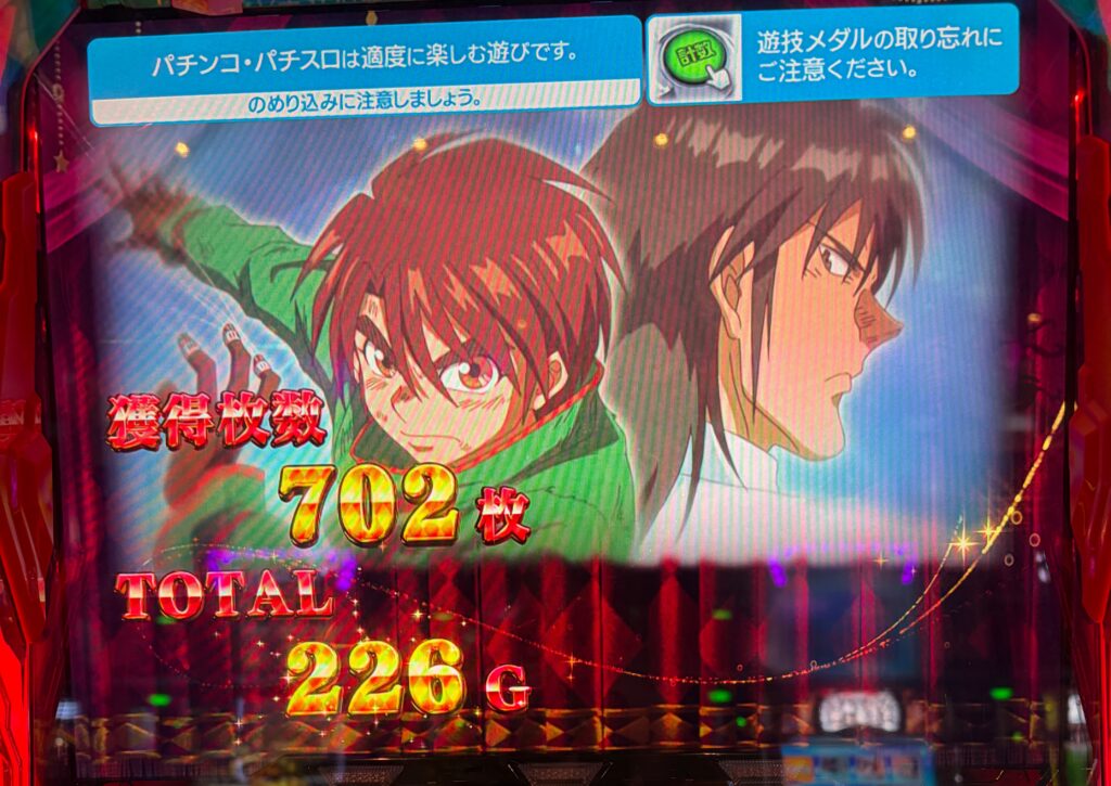 結果は702枚、回収は752枚でこの後は終了画面が鳴海だったのと